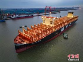 世界最大の新造コンテナ船、艤装を完了し試験航行実施江蘇省