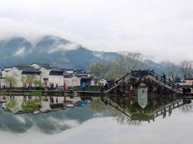 雨上がりの趣ある古村の景色安徽省黄山