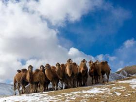 越冬のためラクダを移動させる牧民甘粛省阿克塞