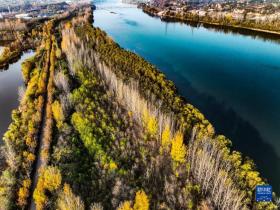 色彩が競演しているような黄河湿地の冬景色河南省済源