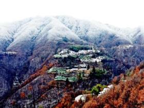 赤色の大地に映える白い雪河南西部の山岳エリア