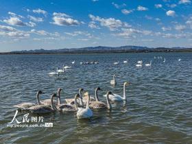 越冬のためオオハクチョウが天鵝湖に飛来山東省栄成