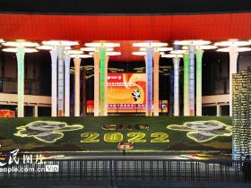 色鮮やかなイルミネーション煌めく輸入博会場の「四つ葉のクローバー」