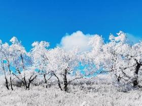 木々の梢にも美しく雪化粧黒竜江・鳳凰山に初雪