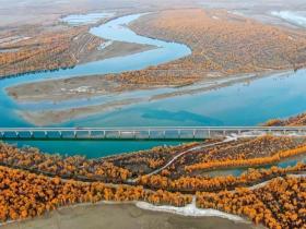 タリム川流域で黄金色に染まったコトカケヤナギ新疆